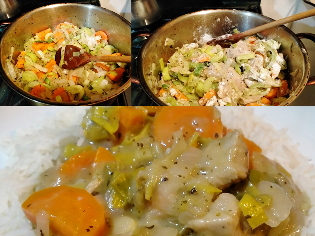 1 dessert spoonful of flour sprinkled in pot, stir well coating ingredients