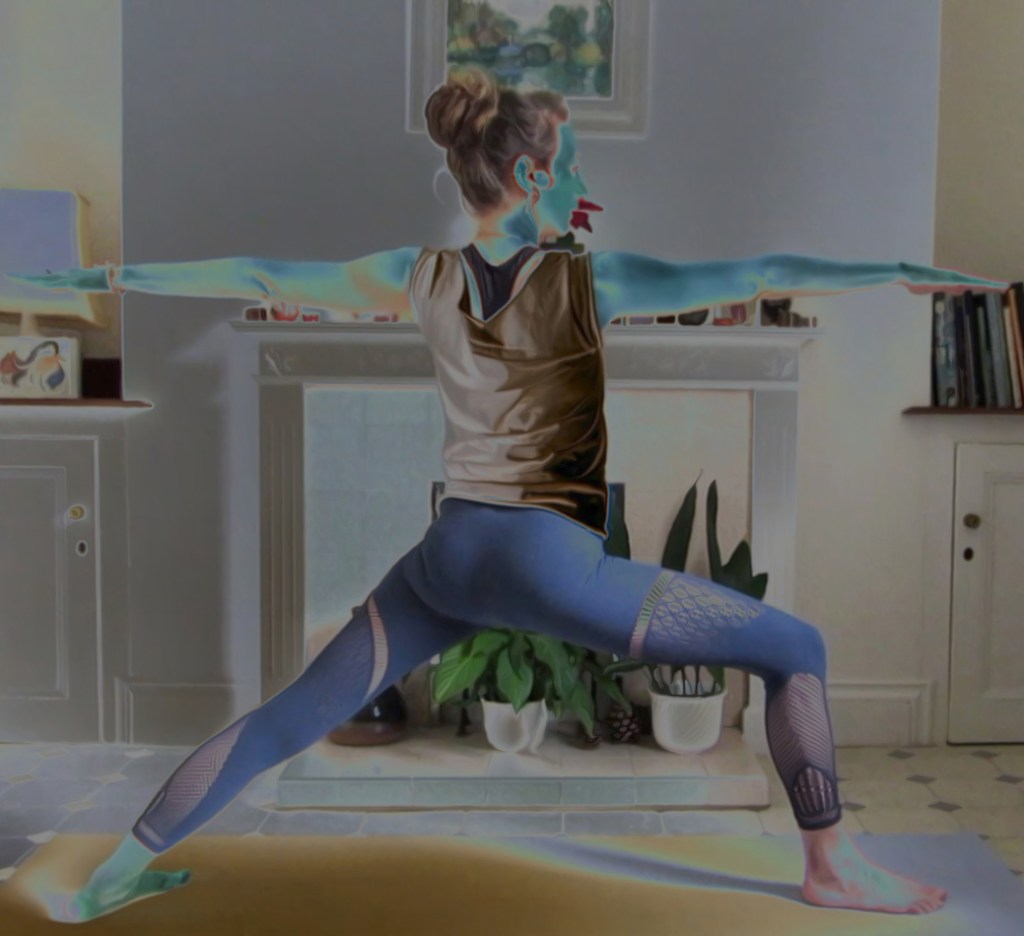 I have always loved working with tensegrity – feeling the stretch in one part o the body by moving another part. Almost as if I was a puppet on strings, I lead with one part of the body and the rest follows, stretching into the shape of the next posture, or even as I breathe, every inhale and exhale introduces me to a deeper place in the posture. As I focus on the root chakra, Warrior I has opened up for me in recent weeks: