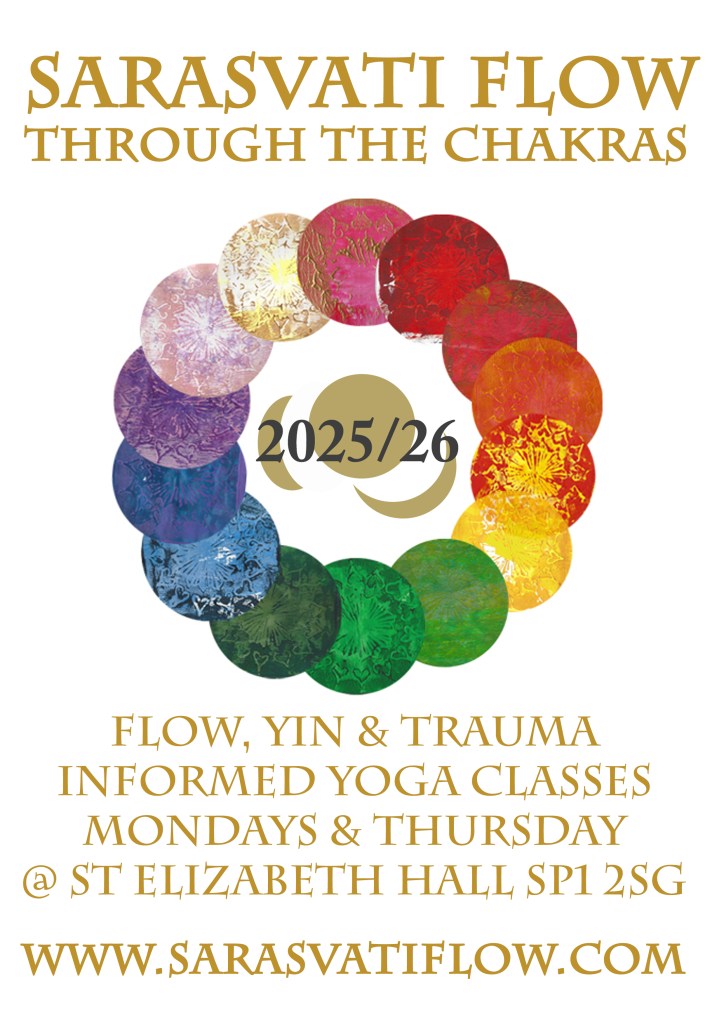 I am excited to announce new classes on Mondays and Thursday at St Elizabeth Hall SP1 2SG. We will be starting with the root chakra on March 31st and work our way up the sushumna changing focus every new moon, We will work on each individual chakra, followed by the intersection with its adjacent chakra. First chakra, first and second chakras, second chakra, second and third chakras, third chakra, and so on. By working on the intersection we stimulate the flow between the two chakras. We tackle each point anatomically, on the physical body, energetically on the pranic body and psychologically on the mental body. It takes fourteen moons to complete one flow, working from the root to the crown. You can join the flow at any time but if you can start from the beginning, at the root, even better.